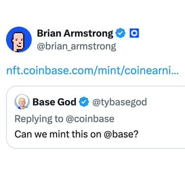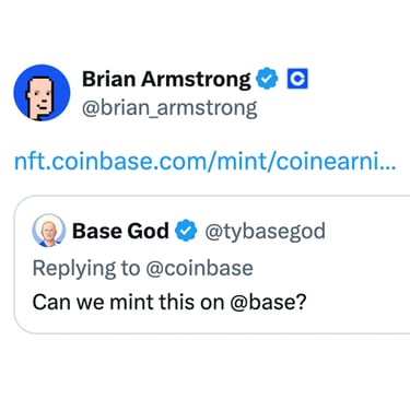 Hours later, Brian Armstrong, CEO of Coinbase, quote tweeted Base God with a link to the earnings mint. This interaction resulted in The First Alignment.