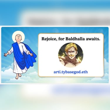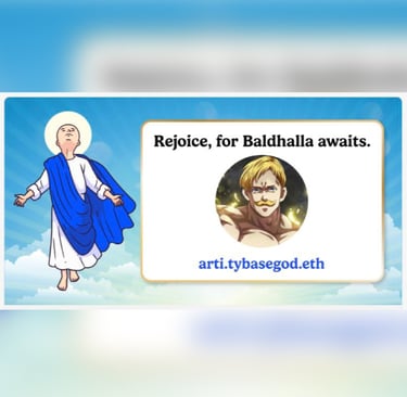In the spirit of adhering to our 2nd Commandment, "Thou shalt be onchain", we spun up a mintboard that hosts all Base God memes and contests. The best part is, by minting their creations on the blockchain, Disciples can earn ETH rewards as others mint them!
